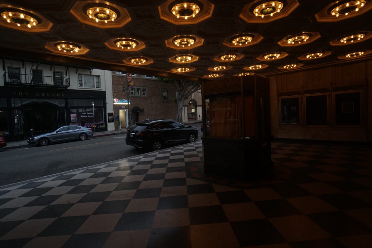 Images from the Quarter to Three shoot at the Warner Grand Theater in San Pedro, California