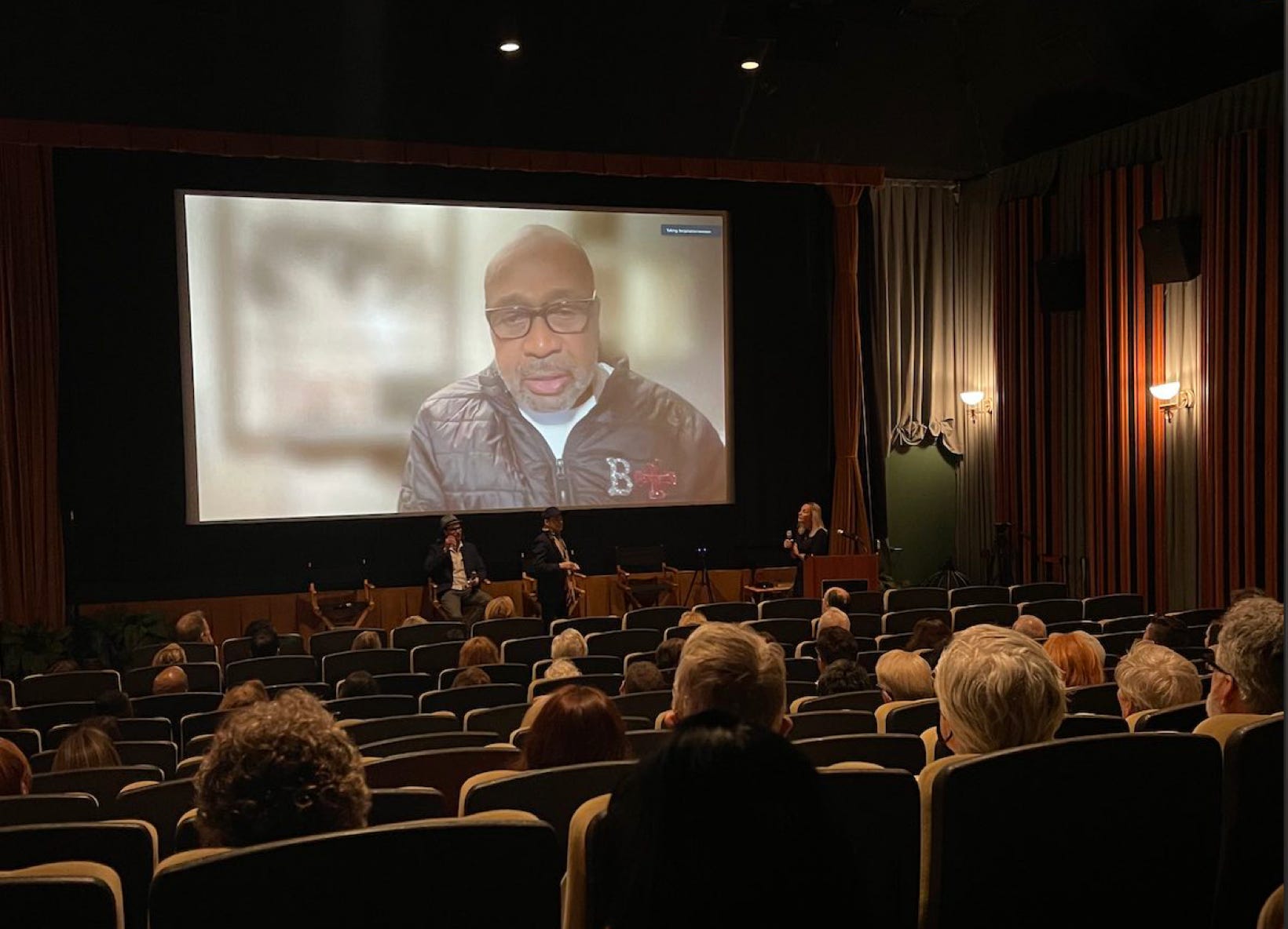 Ben Vereen answers questions via live teleconference at the Quarter to Three screening at the Charlie Chaplain Theatre.